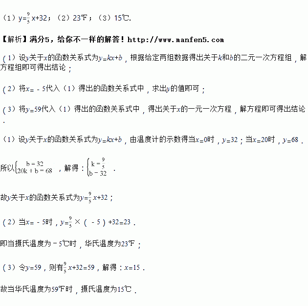 (2)当摄氏温度为﹣5℃时,华氏温度为多少?