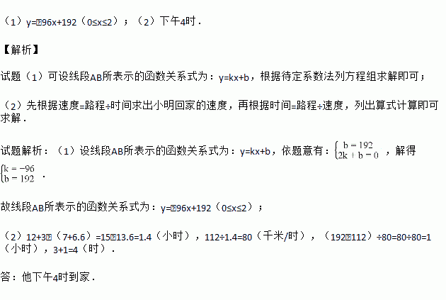 (2)已知昨天下午3点时,小明距西安112千米,求他何时到家?