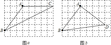 (2)图b中画出△ABD(点D在小正方形的顶点上),使△ABD是等腰三角形∠ABD=45°.