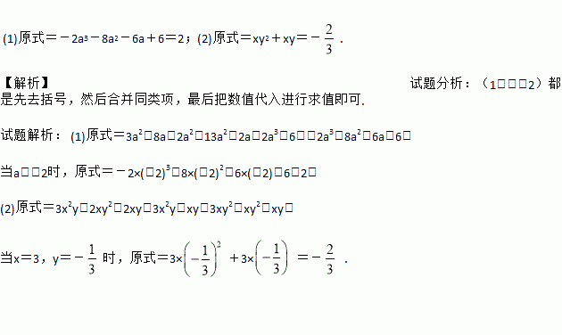 化简求值:(1)(3a2-8a)+(2a2-13a2+2a)-2(a3-3),其中a=-2;