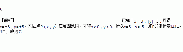 已知点P(x,y)在第四象限,且│x│=3,│y│=5,则点P的坐标是( )