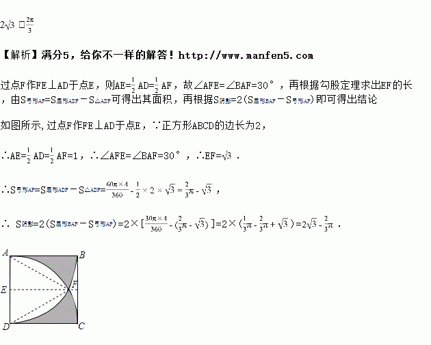 如图,正方形ABCD的边长为2,分别以A、D为圆心,2为半径画弧BD、AC,则图中阴影部分的面积为_____.