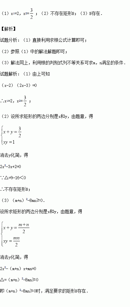 £¨3£©Èç¹û¾ØÐÎAµÄ±ß³¤ÎªmºÍn£¬ÇëÄãÑо¿Âú×ãʲôÌõ¼þʱ£¬¾ØÐÎB´æÔÚ£¿