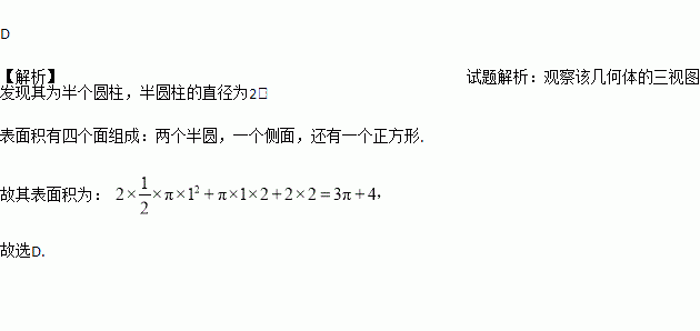 一个几何体的三视图如图所示,则该几何体的表面积为( )