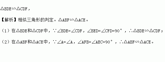 如图,锐角三角形ABC的边AB,AC上的高线CE和BF相交于点D,请写出图中的两对相似三角形: ▲ (用相似符号连接).