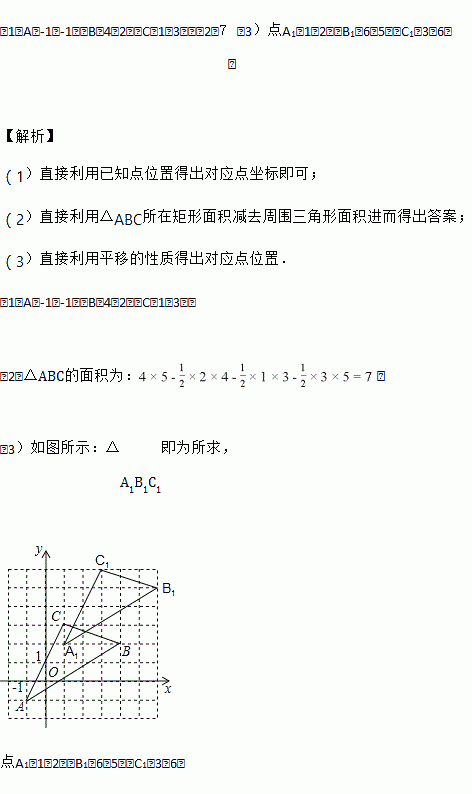(3)若把△ABC向上平移3个单位,再向右平移2个单位得△A1B1C1,在图中画出△A1B1C1的位置,并写出点A1、B1、C1的坐标.