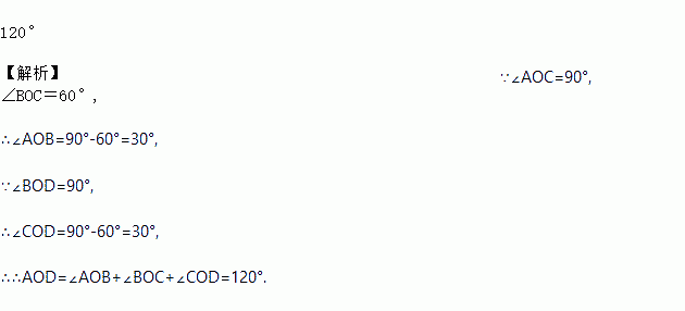 如图,∠AOC与∠BOD都是直角,∠BOC=60°,则∠AOD=______________.