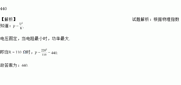 一个用电器的电阻是可调节的,其范围为110~220Ω,已知电压为220V,那么这个用电器功率最大为