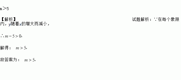 已知反比例函数y=在每个象限内y随着x的增大而减小,则常数m的取值范围是 .