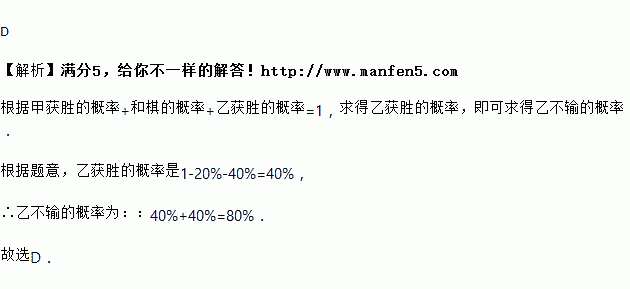 甲乙两人下棋,甲获胜的概率为,和棋的概率为,那么乙不输的概率为( )