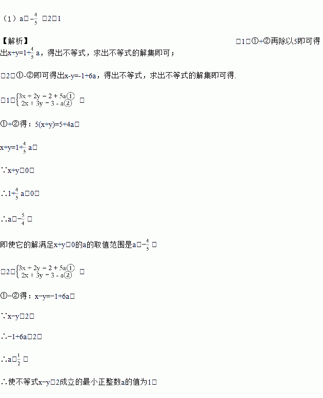 (2)求使不等式x-y>2成立的最小正整数a的值.