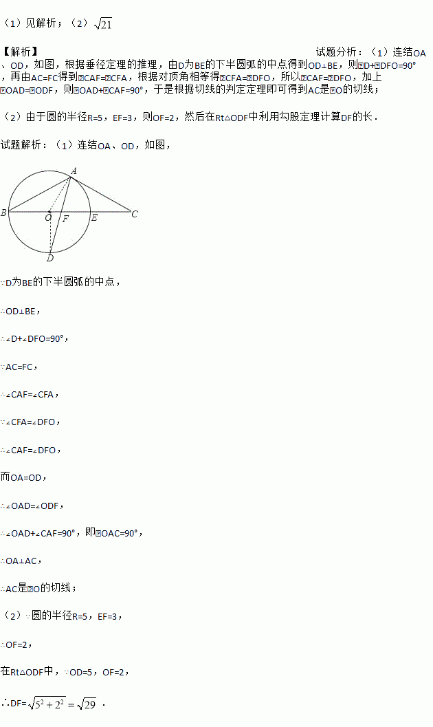 如图,以△ABC的BC边上一点O为圆心的圆,经过A,B两点,且与BC边交于点E,D为BE的下半圆弧的中点,连接AD交BC于F,AC=FC.
