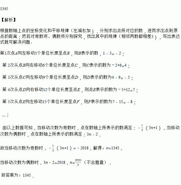 如图,A点的初始位置位于数轴上表示1的点,现对A点做如下移动:第1次向左移动3个单位长度至B点,第2次从B点向右移动6个单位长度至C点,第3次从C点向左移动9个单位长度至D点,第4次从D点向右移动12个单位长度至E点,…,依此类推.这样第_____次移动到的点到原点的距离为2018.