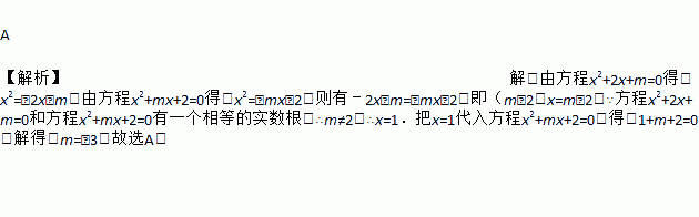 若方程x2+2x+m=0和方程x2+mx+2=0有一个相等的实数根,则m的值为( )