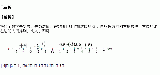 -(-5), -|2|, -1, 0.5, -(-3), -|-4|, 3.5.