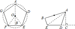 小赵对芜湖科技馆富有创意的科学方舟形象设计很有兴趣,他回家后将一正五边形纸片沿其对称轴对折.旋转放置,做成科学方舟模型.如图所示,该正五边形的边心距OB长为