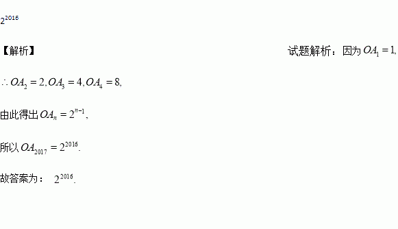 如图,△A1B1A2,△A2B2A3,△A3B3A4,…,△AnBnAn+1都是等腰直角三角形,其中点A1,A2,…,An在x轴上,点B1,B2,…,Bn在直线y=x上.已知OA1=1,则OA2017的长为_________.