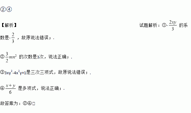 下列说法:①的系数是;②的次数是次;③是七次三项式;④是多项式.其中说法正确的是______(写出所有正确结论的序号).