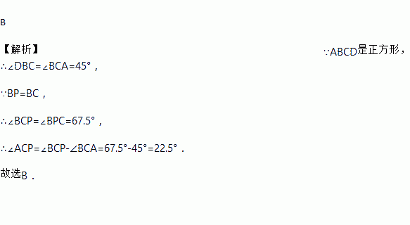 如图,已知P是正方形ABCD对角线BD上一点,且BP=BC,则∠ACP的度数是( )