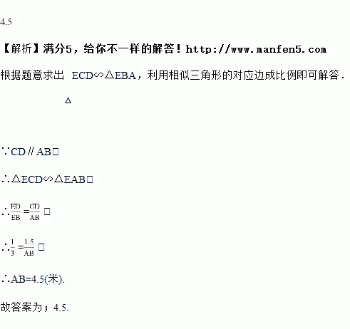 小亮希望测量出电线杆的高度,他在电线杆旁的点处立一标杆,标杆的影子与电线杆的影子部分重叠(即点、、在一直线上),量得米,米.则电线杆的高为________米.