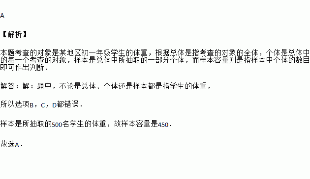 为了了解某地区初一年级5000名学生的体重情况,从中抽取了450名学生的体重,就这个问题来说,下面说法中正确的是( )