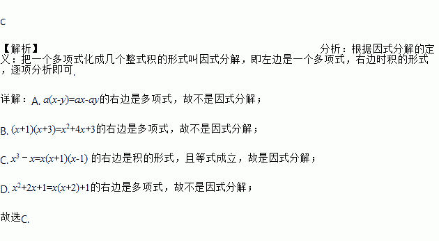 C. x3﹣x=x(x+1)(x-1) D. x2+2x+1=x(x+2)+1