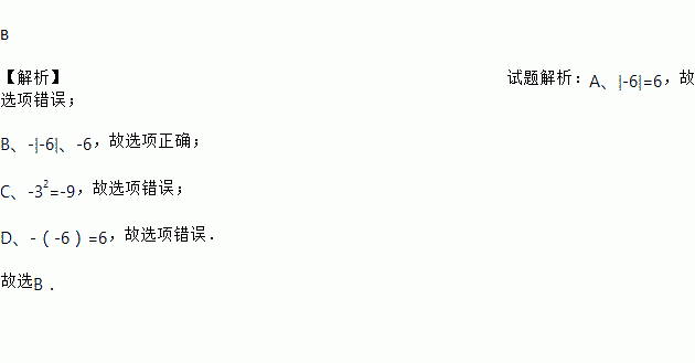 A. |-6| B. -|-6| C. -32 D. -(-6)