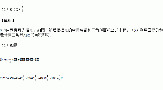 (1)建立平面直角坐标系,描出A、B、C三点,求出三角形ABC的面积;