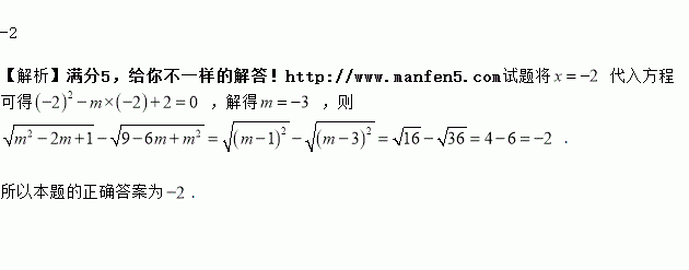 已知x=-2是方程x2-mx+2=0的根,则-=_____________