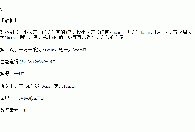 五个完全相同的小长方形拼成如图所示的大长方形,大长方形的周长是16cm,则每个小长方形的面积是__ cm 2.