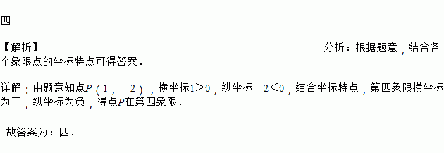 点P(1,-2)在第_________象限.
