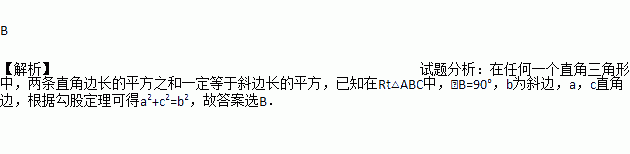 A. a2+b2=c2 B. a2+c2=b2 C. b2+c2=a2 D. (a+c)2=b2