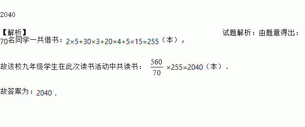 某校九年级有560名学生参加了市教育局举行的读书活动,现随机调查了70名学生读书的数量,根据所得数据绘制了如图的条形统计图,请估计该校九年级学生在此次读书活动中共读书________本.