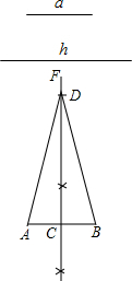 分析:(1)作AB=a;(2)作AB的垂直平分线CF,垂足为C;(3)在CF上截取CD=b;(4)连接AD、BD,即可得等腰三角形.