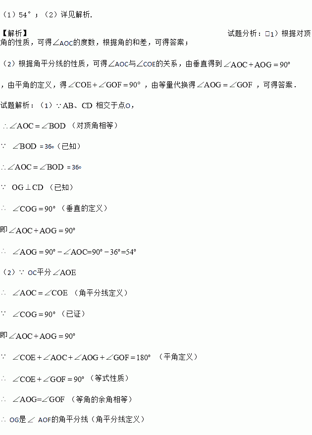 (2)如果OC是的平分线,那么OG是的平分线吗?说明理由.