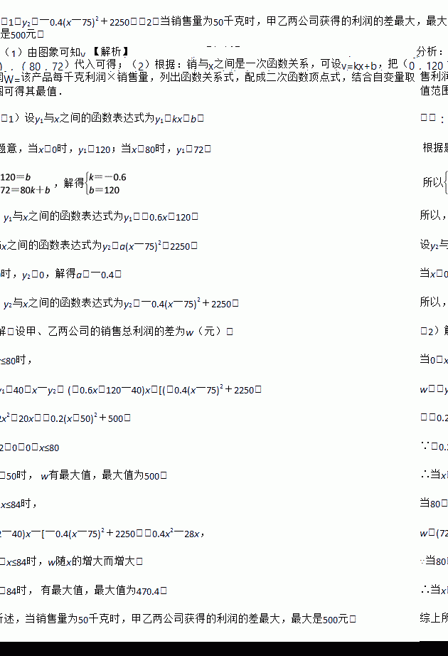 (2)当该产品销售量为多少千克时,甲、乙两公司获得的利润的差最大?最大值为多少?