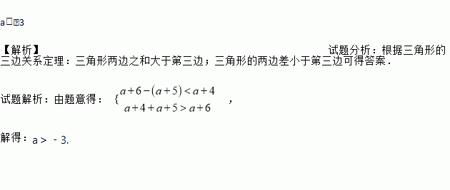 a>﹣3 【解析】试题分析:根据三角形的三边关系定理:三角形两边之和大于第三边;三角形的两边差小于第三边可得答案. 试题解析:由题意得: , 解得:a>﹣3.