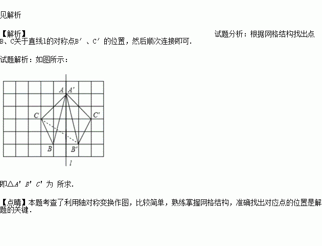 如图,在单位长度为1个单位长度的小正方形组成的正方形网格中,点A,B,C在小正方形的顶点上.在图中画出与关于直线l成轴对称的△A'B'C'.