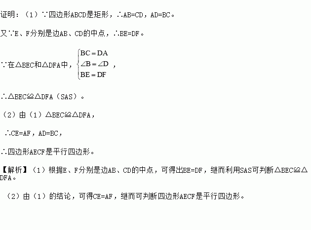 如图,在矩形ABCD中,E、F分别是边AB、CD的中点,连接AF,CE.
