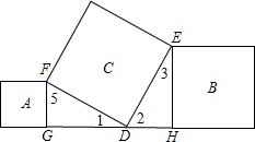 分析:先根据角之间的关系以及正方形的性质证明两空白三角形全等,然后根据勾股定理即可解答.