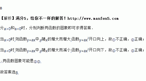已知a≠0,在同一直角坐标系中,函数y=ax与y=ax2的图象有可能是( )