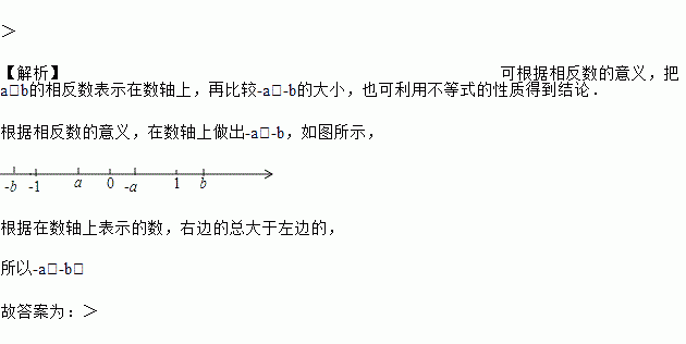 (题文)a,b是有理数,它们在数轴上的对应点的位置如图所示,则﹣a,﹣b的大小关系是﹣a_____﹣b(填“>”“=”或“<”)