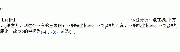 若点P在x轴的下方,y轴的左方,到x轴的距离是3,到y轴的距离是4,则点P的坐标为( )