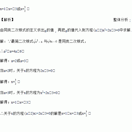 已知最简二次根式与是同类二次根式,求关于x的方程(a﹣2)x2+2x﹣3=0的解.