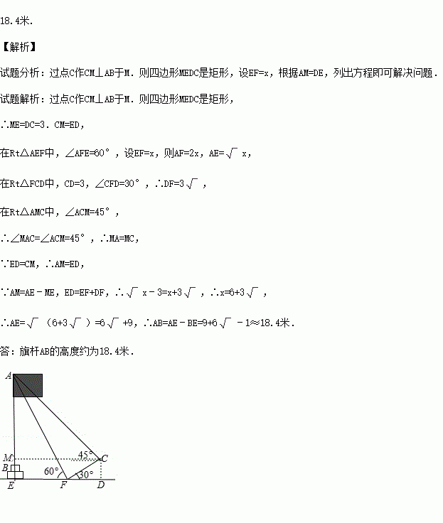 的仰角为45°,朝着旗杆的方向走到台阶下的点