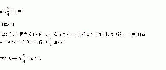 已知关于x的一元二次方程(m﹣1)x2+x+1=0有实数根,则m的取值范围是 .