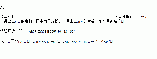 如图,已知直线AB和CD相交于点O,∠COE= 90, OF平分∠AOE, ∠COF=28.求∠AOC的度数.