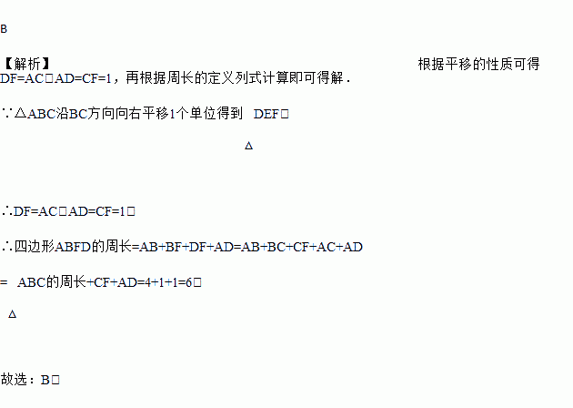 如图,将周长为的△ABC沿方向向右平移个单位得到△DEF,则四边形的周长为( )