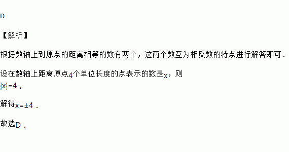 在数轴上到原点的距离等于4个单位长度的点所表示的数是( )
