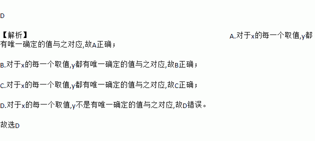 下列曲线中,不能表示y是x的函数的是( )